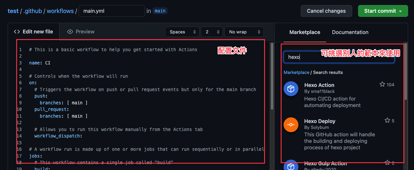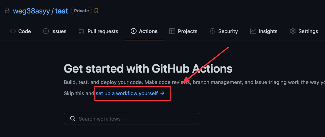 點選 set up a workflow yourself,進行.yml檔的配置。