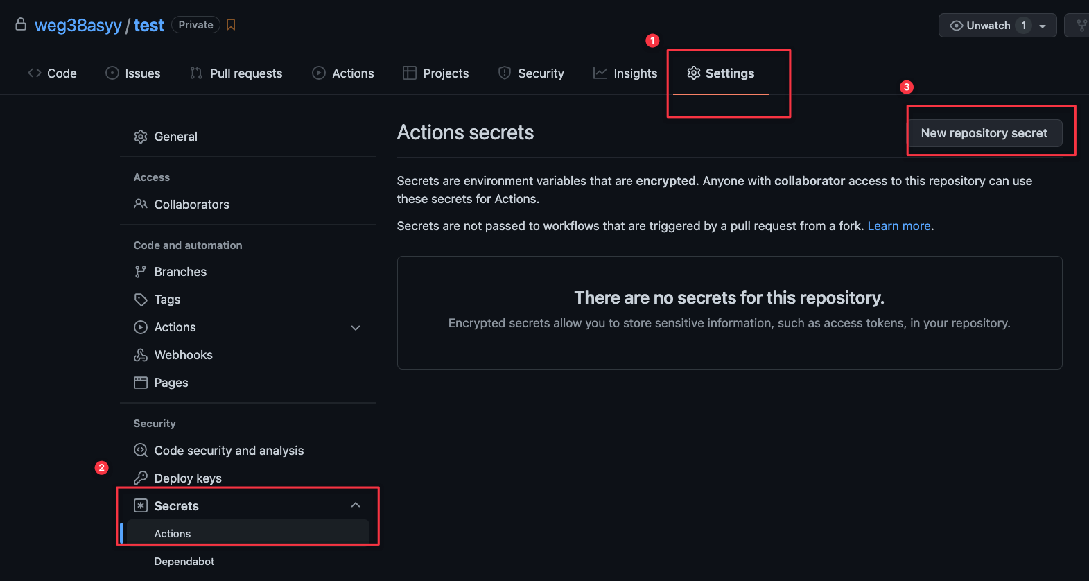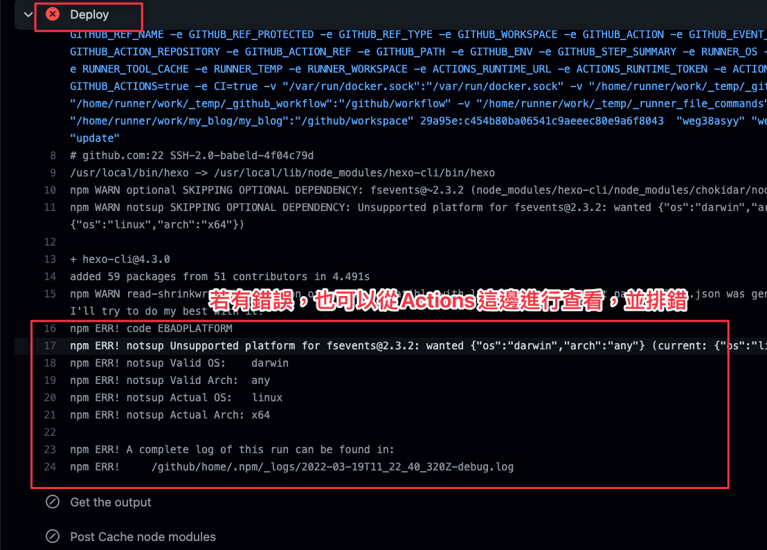 下圖就代表配置完成了!(配置完成後,會發現Actions有運行了,不過現階段尚會報錯,還需要把SSH給配好才行)。